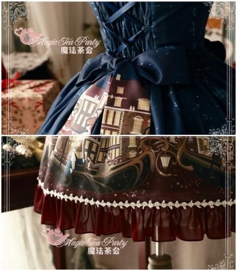 クラシカルロリータ 夜空のゴンドラプリント編み上げジャンパースカート リボン レース 甘ロリ クラロリ