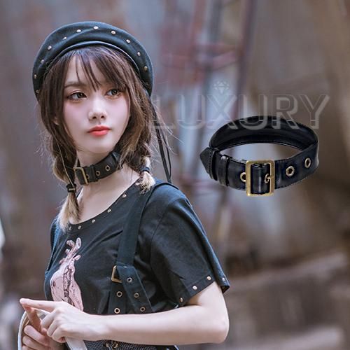 ロリータファッション/ロリータ/チョーカー/ゴスロリ/ゴシック/クラシカル/ブラック/ネックレス/フェイクレザー/小物/アクセサリー/通年/かわいい/ファッション雑貨/コスチューム/フェミニン/パンク/Lolita/ガーリー/キュート/茶話会/コスプレ/レトロ/お姫様/お出かけ/レースアップ/コスプレ/イベント/フリーサイズ/韓国ファッション/おしゃれ/デート