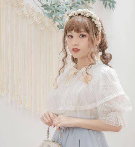 ロリータファッション/ロリータ/Lolita/ブラウス/半袖/ホワイト/ブラック/ストライプ/ドット/透け感/パフ袖/リボン/クラシカル/クラロリ/ブルー/レース/レーシィ/エレガント/クラシカル/クラロリ/フェミニン/レース/カジュアル/レトロ/おでかけ/デイリー/フリル/こなれ感/ボタン/パーティ/ユメ可愛い/人気/トレンド/おでかけ/パーティ/お呼ばれ/ダンス/茶話会/春夏/ゴスロリ/韓国ファッション/おしゃれ/デート