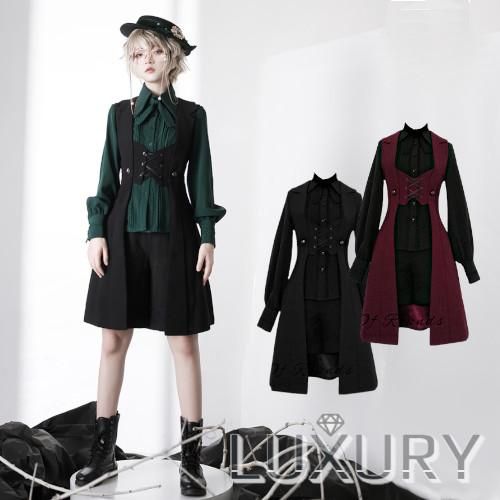 ロリータファッション/ジレ/ベスト/ロング/レイヤード/重ね着/レースアップ/バイカラー/無地/ゴシック/お姫様/姫ロリ/かわいい/秋/秋物/秋服/冬/冬物/冬コーデ/冬服/お茶会/撮影/舞台/撮影用/ハロウィン/クリスマス/バレンタイン/イベント/結婚式/ウェディング/二次会/謝恩会/お呼ばれ/パーティー/デート
