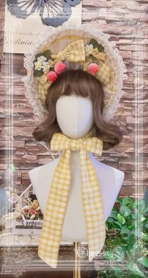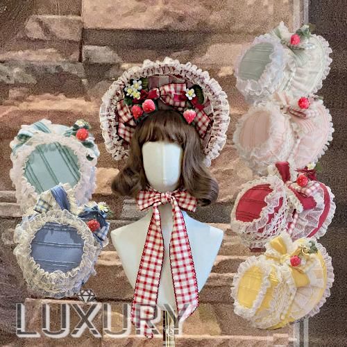 ロリータファッション/ボンネット/ヘッドドレス/帽子/レース/リボン/フリル/チェック/エレガント/ふんわり/華やか/可愛い/甘ロリ/クラシカル/クラロリ/姫ロリ/エレガント/上品/レトロ/お茶会/撮影/舞台/撮影用/クリスマス/バレンタイン/イベント/結婚式/ウェディング/二次会/謝恩会/デート/お呼ばれ/パーティー/デート