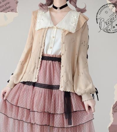 ロリータファッション/カーディガン/ニット/レースアップ/リボン/バイカラー/フリル/無地/かわいい/華やか/可愛い/甘ロリ/クラシカル/クラロリ/姫ロリ/エレガント/上品/レトロ/お茶会/撮影/舞台/撮影用/クリスマス/バレンタイン/イベント/結婚式/ウェディング/二次会/謝恩会/デート/お呼ばれ/パーティー/デート