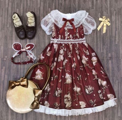 ロリータファッション/甘ロリ/ドレス/オフショルダー/オフショル/ティーカップ/アリス/ワンピース/ワンピ/ミディアム丈/ワンピのみ/プリント/リボン/ミディアム丈/フレア/レース/フレア/半袖/フリル/ふんわり/森ガール/ドール/姫ロリ/エレガント/上品/レトロ/お茶会/撮影/舞台/撮影用/クリスマス/バレンタイン/イベント/結婚式/ウェディング/二次会/謝恩会/デート/お呼ばれ/パーティー/デート