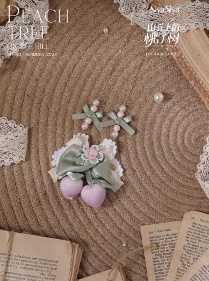 ロリータファッション 甘ロリ ヘッドドレス 3色 桃モチーフ ネックレス お花 ギャザー ひだ お嬢様 レトロ 古風 かわいい ガーリー 優雅 お茶会 イベント 撮影用 アクセサリー