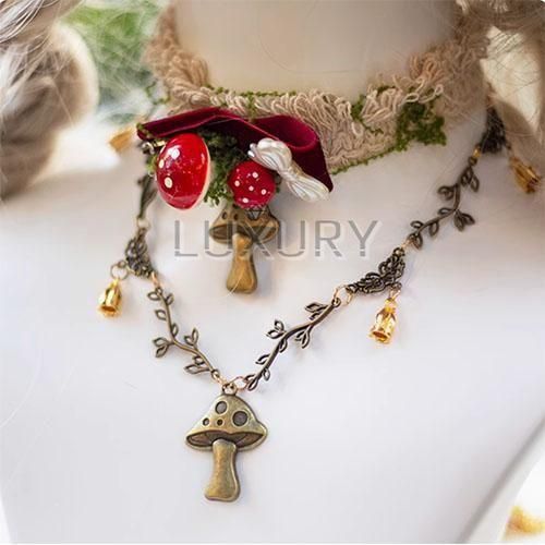 ロリータファッション チョーカー+ヴィンテージリーフチェーン きのこ チャーム 童話風 森ガール かわいい ガーリー お茶会 イベント 森 ピクニック 田園