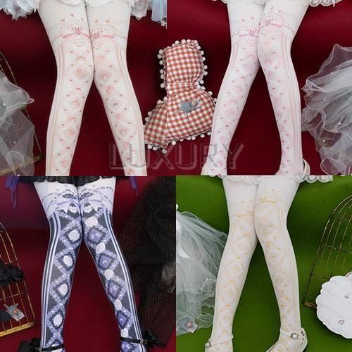 ロリータ タイツ パンスト 5色 デジタルプリント ダークキュートデザイン ゴシック 個性派 ガーリー スウィート お茶会 イベント 撮影 舞台 撮影用 オールシーズン