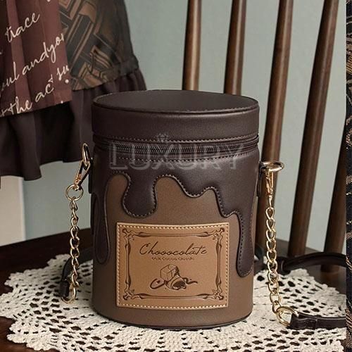 こちらのバッグは、筒型デザインでチョコレート色が特徴で、可愛らしさと遊び心を兼ね備えています!