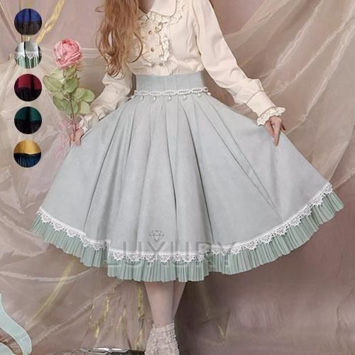 【納期60日】クラシカルロリータ クラロリ スカート のみ 5色 ミディアム丈 ハイウエスト 文学少女 レトロ 上品 優雅 ガーリー フェミニン 秋冬コーデ デイリー お茶会