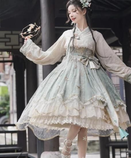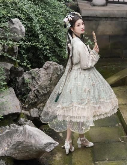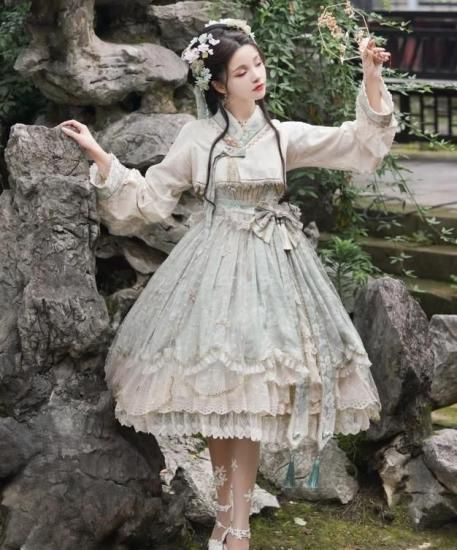 華ロリ 中華ロリ ジャンパースカート のみ 薔薇 バラ柄 ひざ丈 ミディアム 中国風 チャイナ 宮廷風 ゴージャス エレガント レディースファッション お茶会 イベント お呼ばれ パーティー
