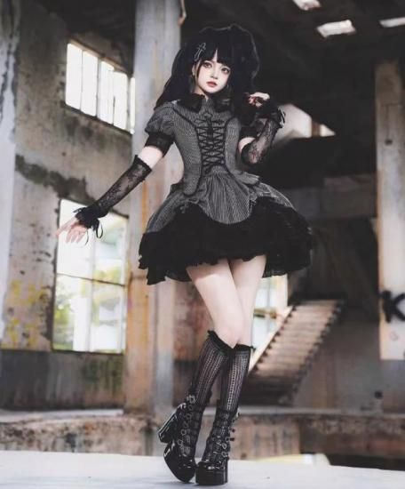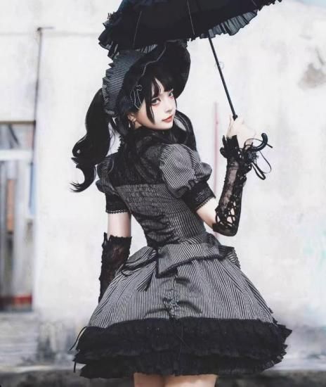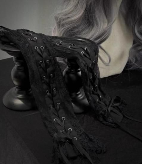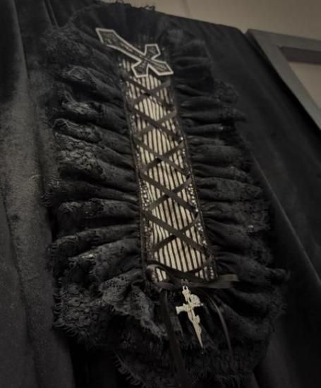 優美なレースとストライプデザインが融合し、暗黒系ファッションに抜群のインパクトを与えます!