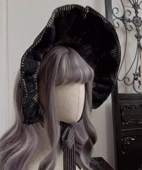 ゴシックロリータ ボンネット アームカバー ヘッドドレス 小物 アクセサリー レース ストライプ 暗黒系 クール ブラック レディース イベント 舞台 撮影用