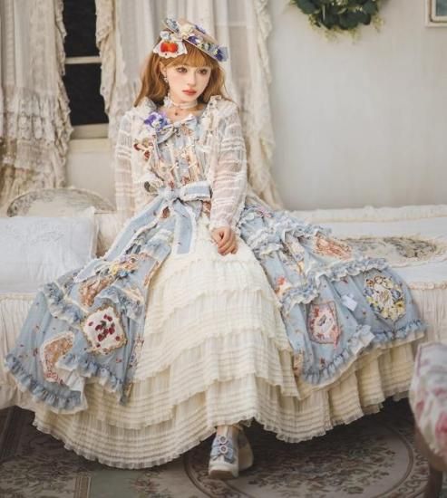 長めのスカート丈はお嬢様スタイルを完璧に演出し、春夏のお茶会やイベントにもぴったりなアイテムです。