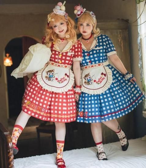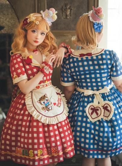 【納期40日】ロリータファッション エプロン のみ 猫柄 ネコ ねこ cat リボン アメリカンダイナー風 ポップ ガーリー 夏コーデ イベント
