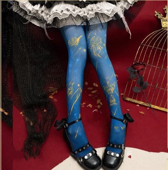 ロリータファッション ゴシック タイツ 4色 薔薇 バラ 暗黒系 魔法使い 華やか 幻想的 夏 夏物 夏コーデ お茶会 イベント 夏素材 涼し気素材