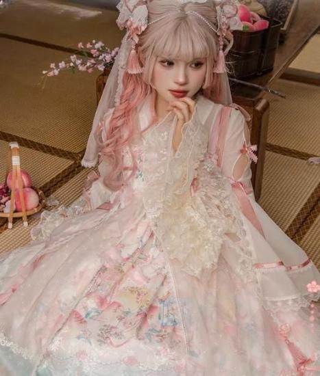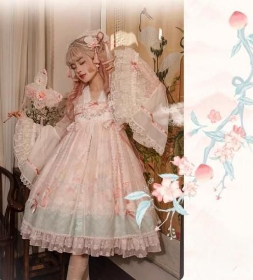 華ロリ 中華ロリ ジャンパースカート のみ ハイウエスト 花柄 お花 膝丈 シフォン アジアン 中国風 チャイナ フェミニン 春夏コーデ 撮影 イベント