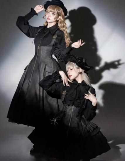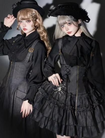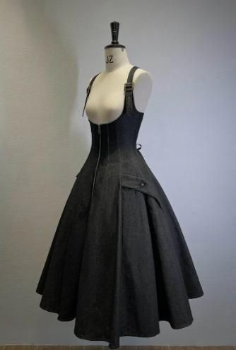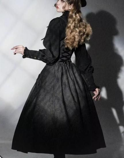 スチームパンク steampunk コルセット風 ジャンパースカート のみ デニム ロング丈 フレンチクラシカル カジュアル 大人可愛い レディース お茶会 普段着 デイリー