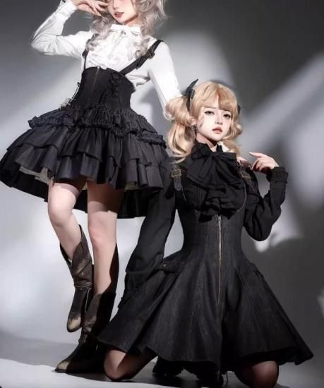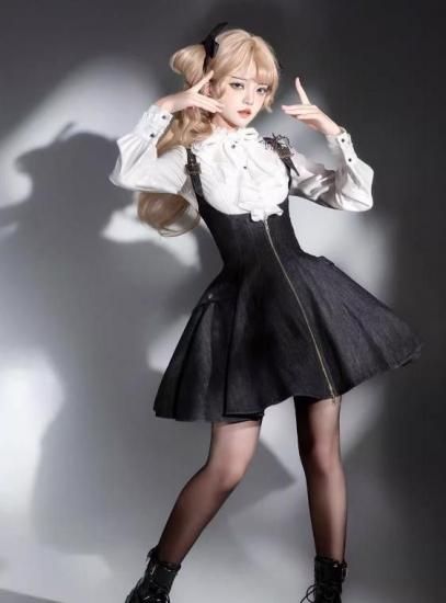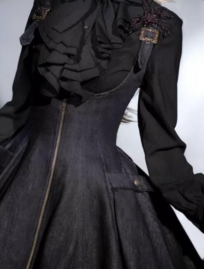 この魅力的なスチームパンクデニムジャンパースカートをお手元に加えて、