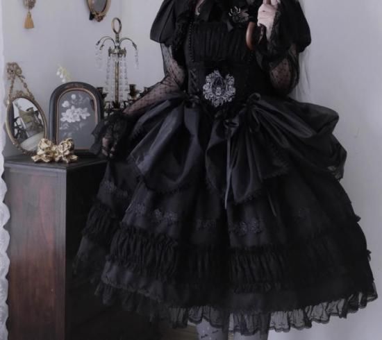 ゴスロリファッション ゴスロリ ジャンパースカート のみ 3色 膝丈 ひざ丈 ミディアム スパイダー チュール 暗黒系 妖艶 ゴージャス レディースファッション イベント 撮影 舞台 撮影用