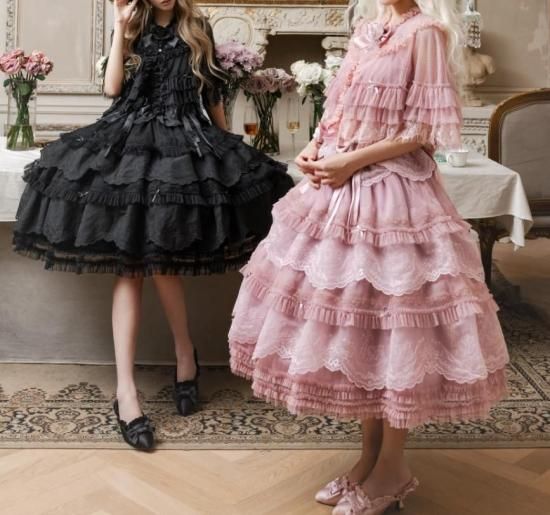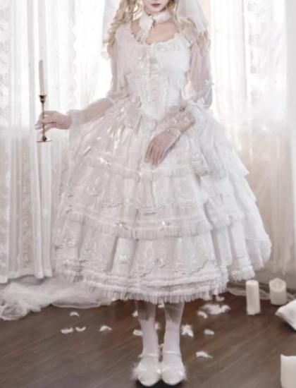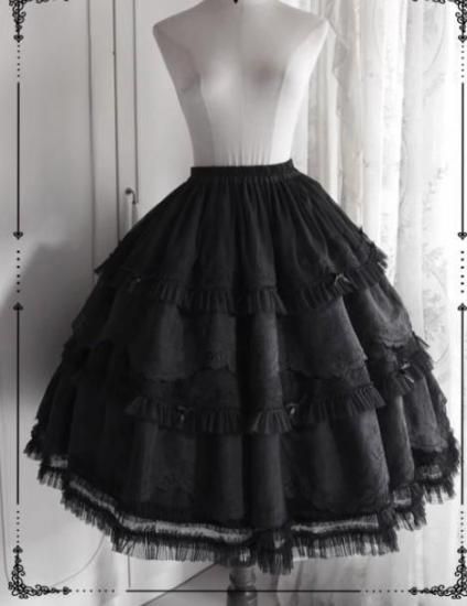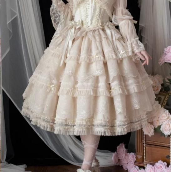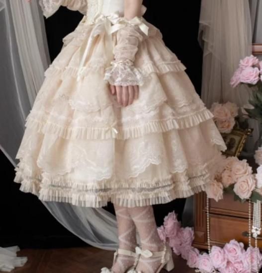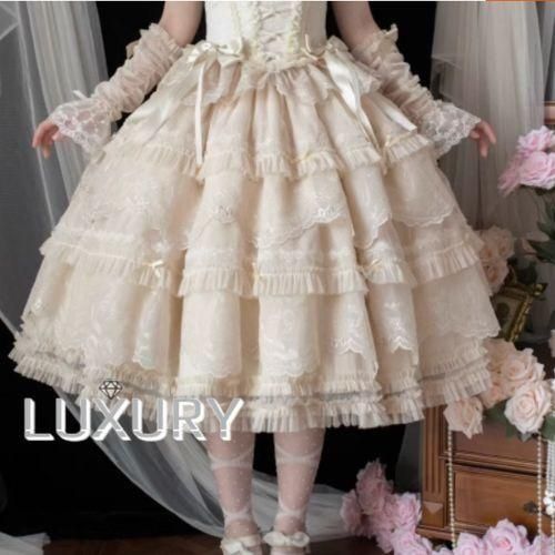 ロリータファッション 甘ロリ スカート のみ ロング丈 レース 刺繍 ティアード フレンチクラシカル スウィート ゴージャス 優雅 レディースファッション お茶会 イベント