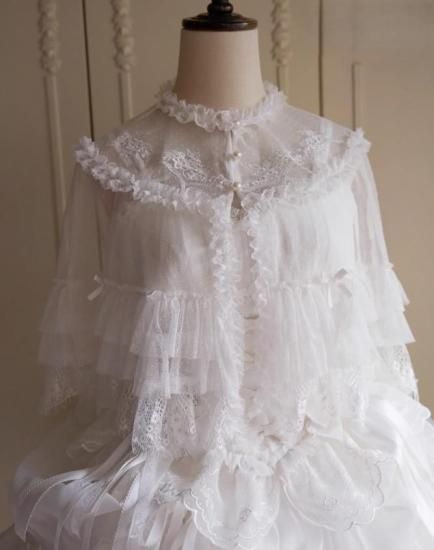 こちらのケープは、エレガントなドット柄のチュール生地と美しい刺繍が施されたフレンチクラシカルなデザインが特徴です!