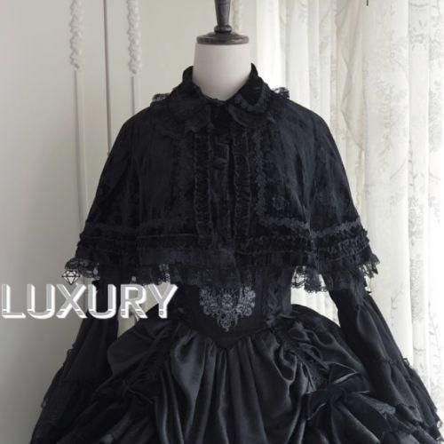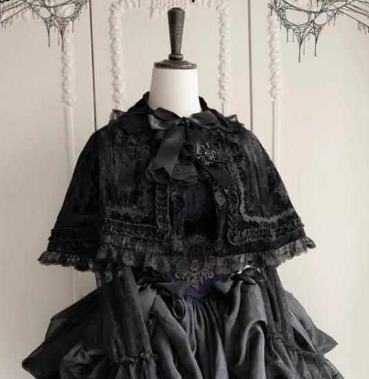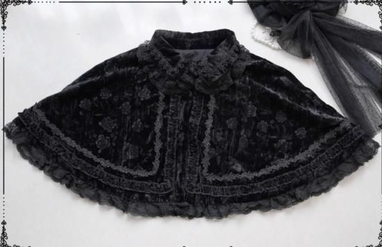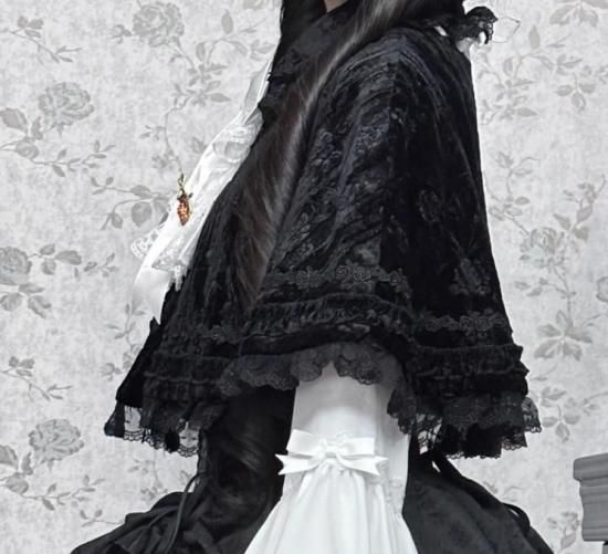 ロリータファッション ゴスロリ ケープ のみ ベルベット 暗黒系 フレンチクラシカル ブラック 幻想的 冬 冬物 冬コーデ 冬服 お茶会 イベント お呼ばれ パーティー