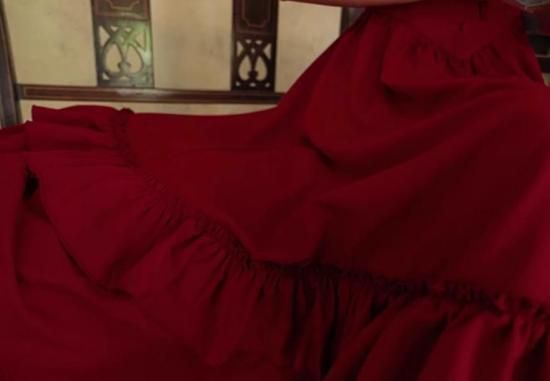こちらのワンピースは、ロング丈のAラインシルエットと、バルーンスリーブが特徴で、