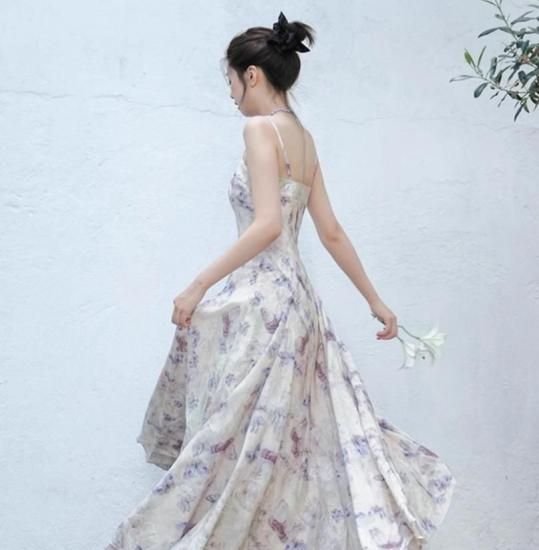 セミロリータ ワンピース のみ バタフライ 蝶々 ロング丈 Aライン フレア ノースリーブ キャミソール 中国風 チャイナ エレガント 春夏コーデ お茶会 デート