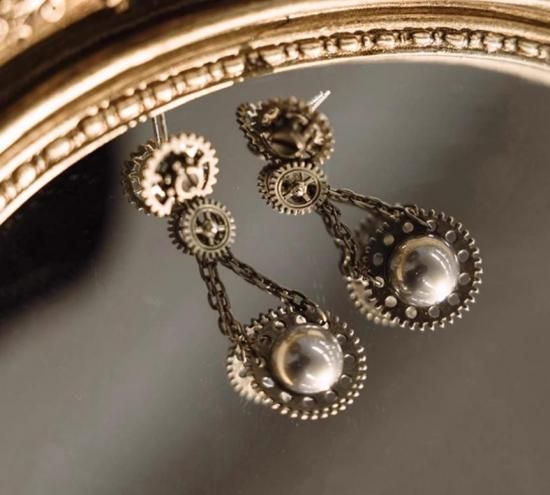 スチームパンク steampunk イヤリング ピアス のみ シルバー パール風 イヤー 耳飾り アクセサリー レトロ 古風 アンティーク ガーリー レディースファッション デイリー