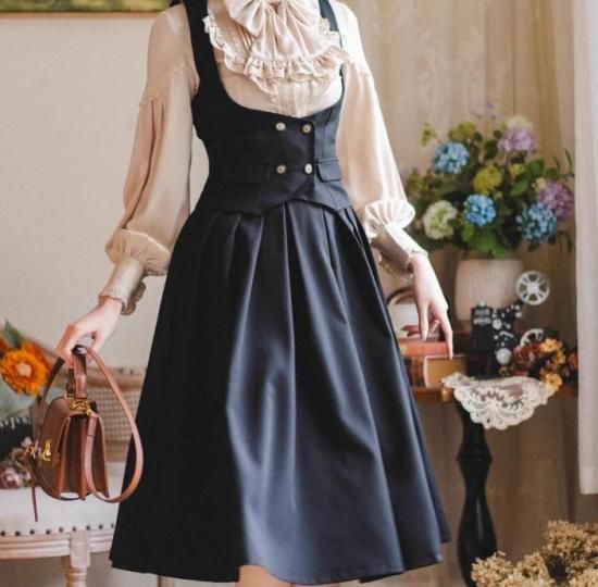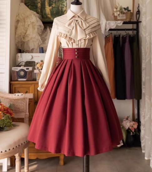 クラシカルロリータ クラロリ スカート のみ 4色 膝丈 ひざ丈 ミディアム コルセット風 レトロ 古風 森ガール ガーリー ナチュラル 清楚 春秋コーデ お茶会 デイリー デート