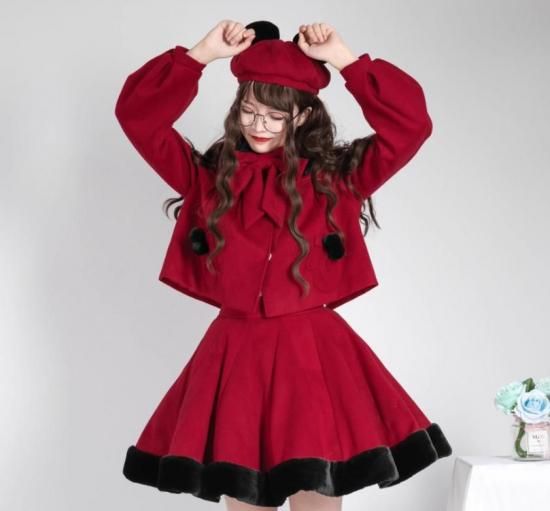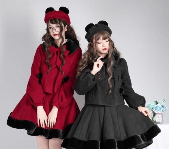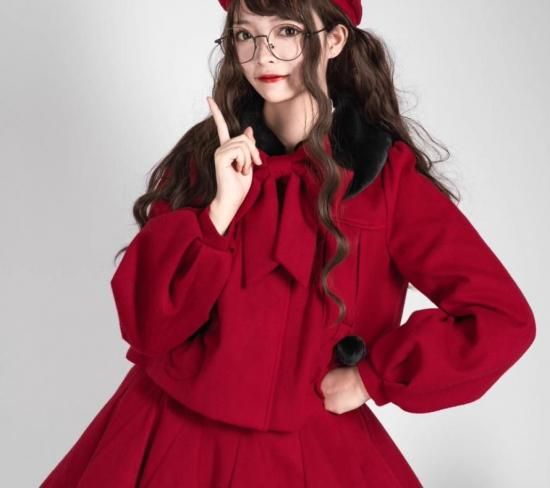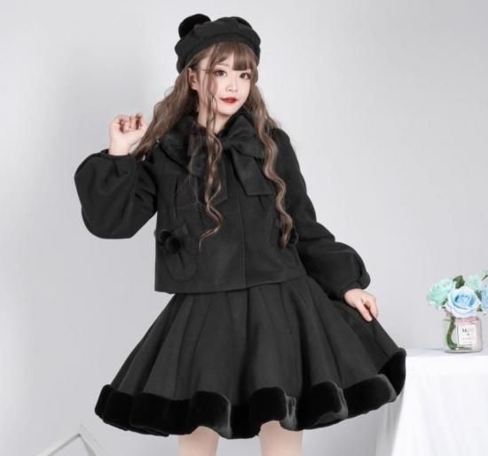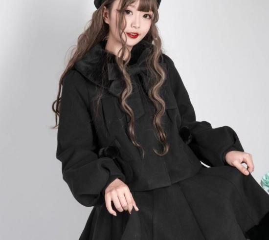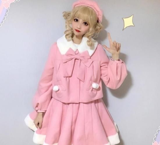 こちらのコートは、ショート丈デザインにポンポン付きの心躍るスタイルが特徴で、甘ロリ系ファッションには欠かせないアイテムです!