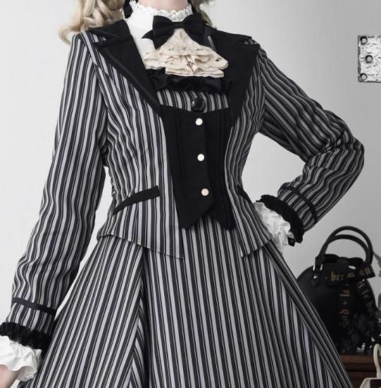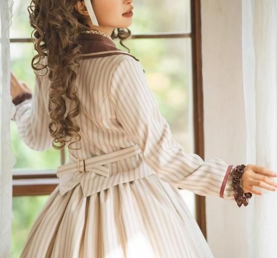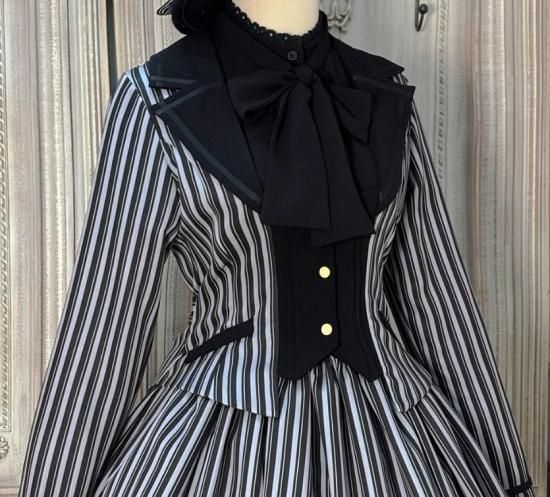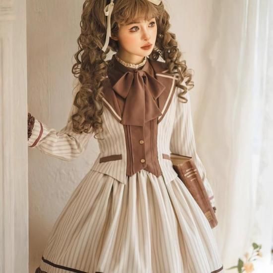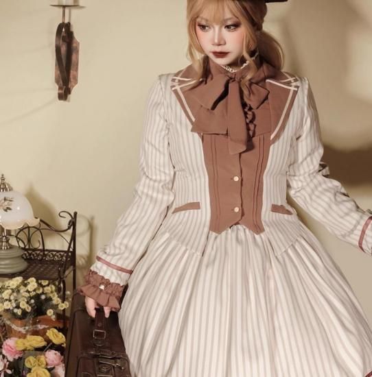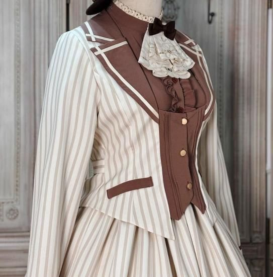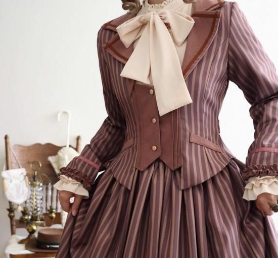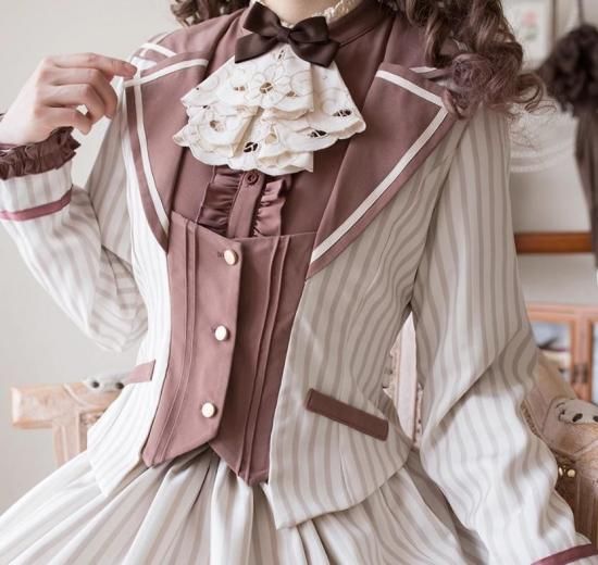 【納期40日】クラシカルロリータ クラロリ ショートジャケット のみ ストライプ チョコレート チョコ 長袖 レトロ 古風 スウィート 秋冬コーデ お茶会 デイリー イベント