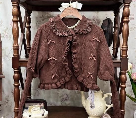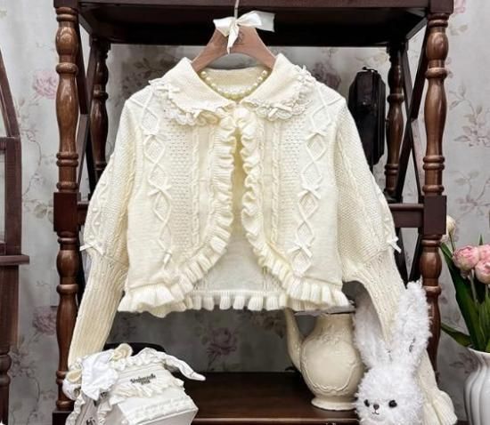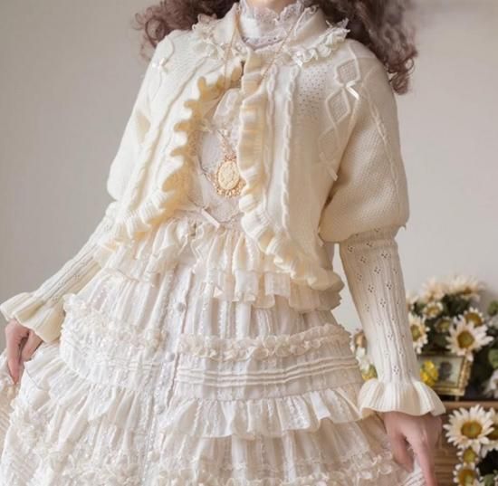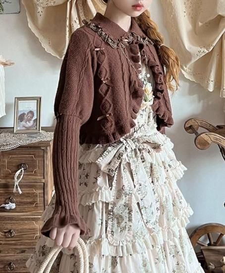 甘ロリ カーディガン のみ アンティーク レトロ 古風 お嬢様 森ガール かわいい ガーリー スウィート 上品 冬 冬物 冬コーデ 冬服 お茶会 デート