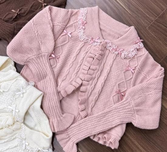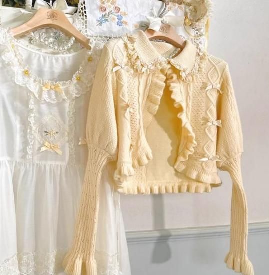 こちらのカーディガンは、古風でレトロなデザインに、お嬢様らしさが引き立つシルエットが特徴です。