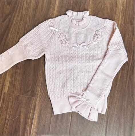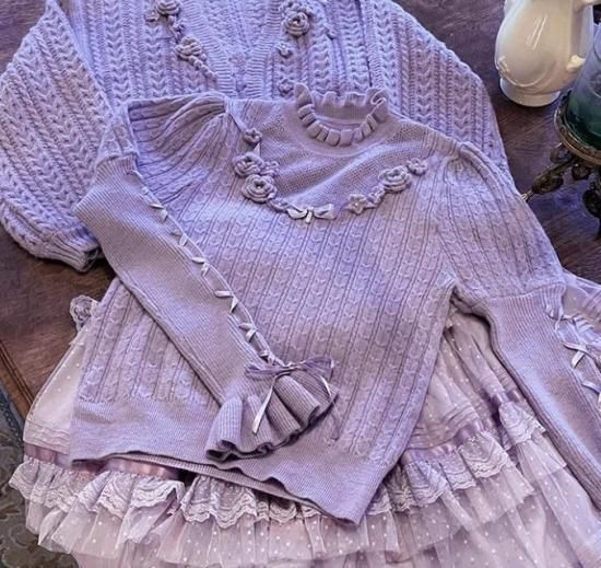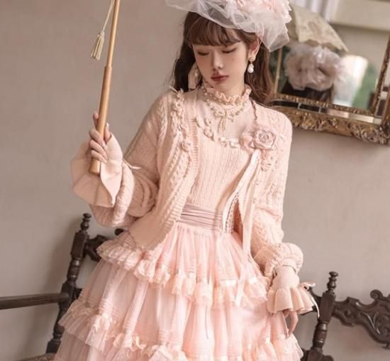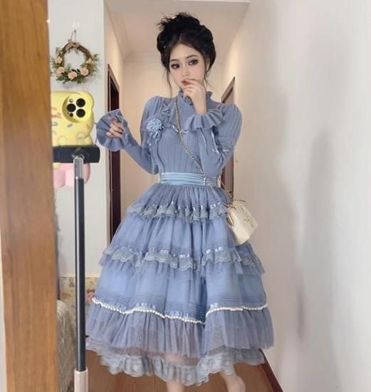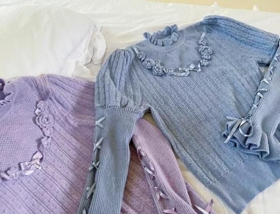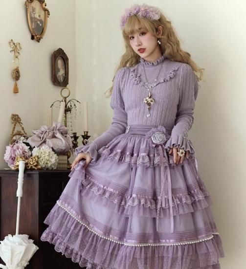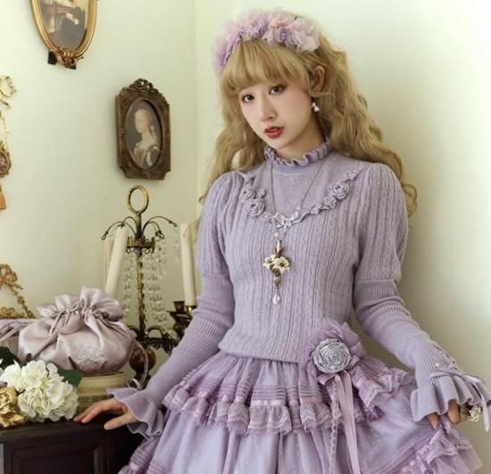 甘ロリ ロリータファッション ニットインナー 花モチーフ 無地 長袖 立ち襟 ハイネック お嬢様 フェミニン ガーリー 秋冬コーデ お茶会 普段着 普段使い デイリー デート