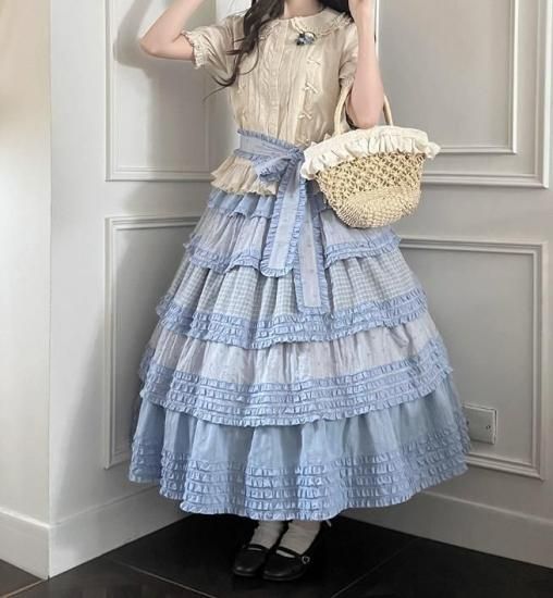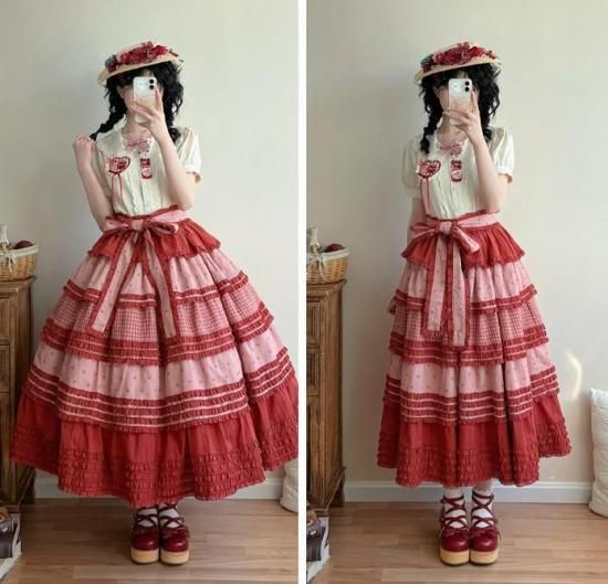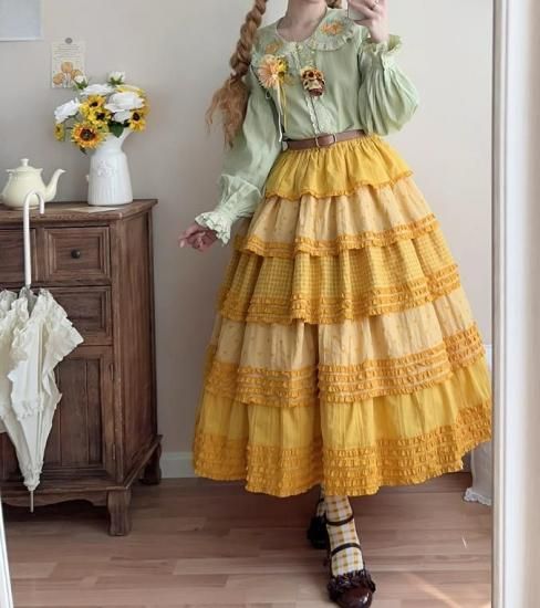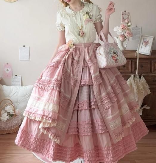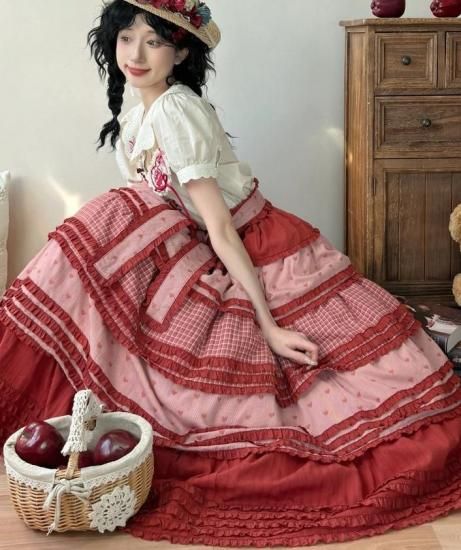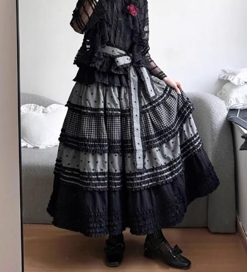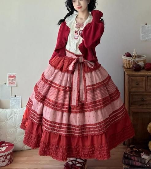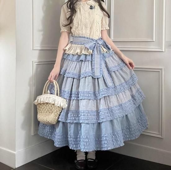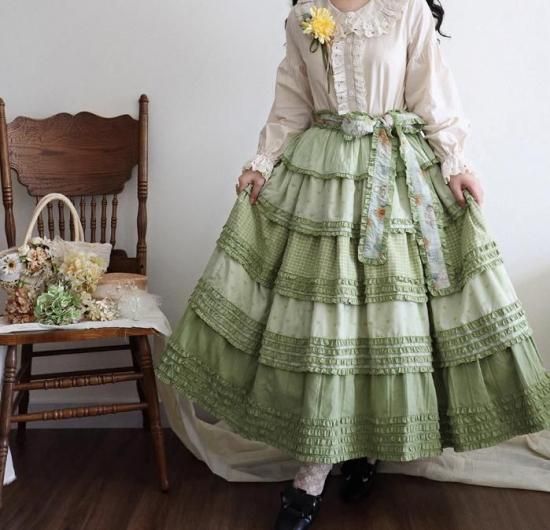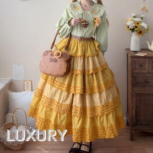 【納期40日】ロリータファッション 甘ロリ スカート のみ パッチワーク ロング丈 森ガール 華やか ガーリー かわいい スウィート 春夏コーデ お茶会 森 ピクニック loli6072