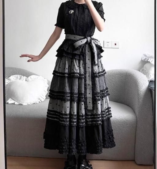 こちらのスカートは、甘ロリスタイルを思わせるパッチワークデザインが特徴で、森ガールをイメージした可愛らしい仕上がりとなっています。