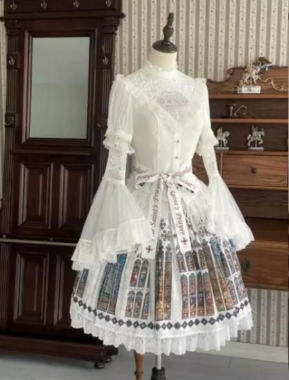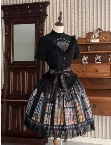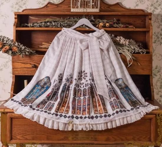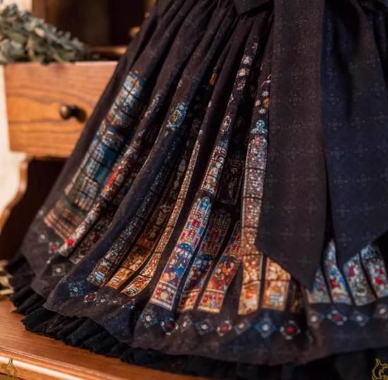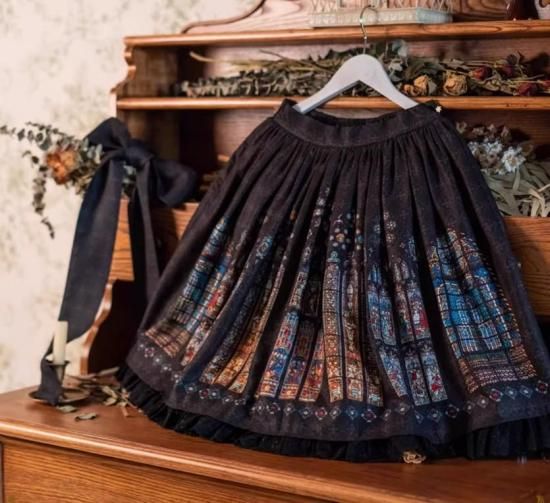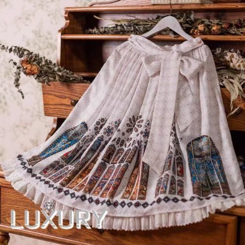 ロリータファッション スカート のみ 2色 ステンドグラス風 ゴシック クラシカル ひざ丈 ミモレ丈 お嬢様 華やか ゴージャス レディースファッション お茶会 撮影