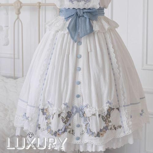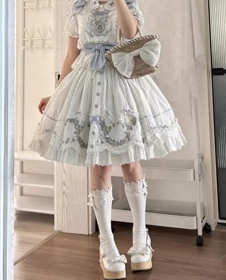 甘ロリ ロリータファッション スカート のみ 2色 綿 コットン お嬢様 かわいい ガーリー 膝丈 ひざ丈 ひざ下丈 ミモレ丈 夏コーデ デート お散歩