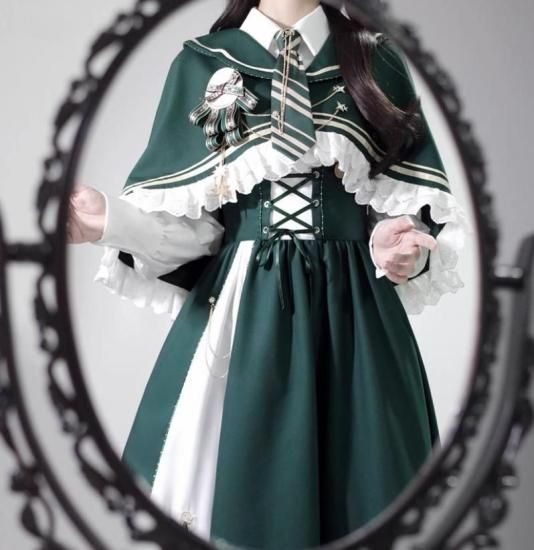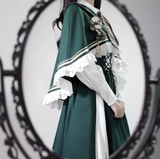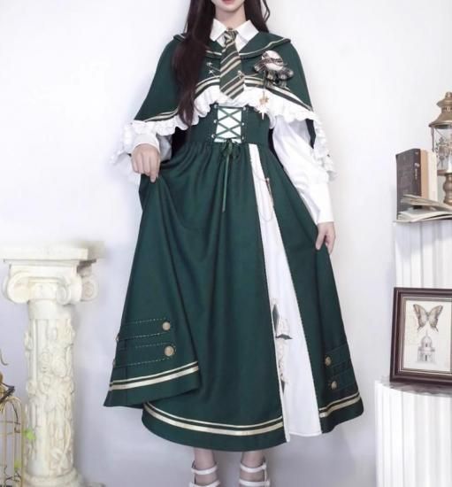 クラシカルロリータ クラロリ サスペンダー付きスカート + シャツ + ケープ + ネクタイ 4点セット 童話風 幻想的 ゴージャス 秋冬コーデ お茶会 イベント 撮影