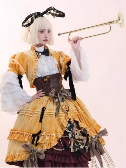 このクラシカルロリータデザインのボレロ、ウエストコルセット、スカートのセットは、まるで物語から飛び出したようなお洒落なスタイルを演出します。