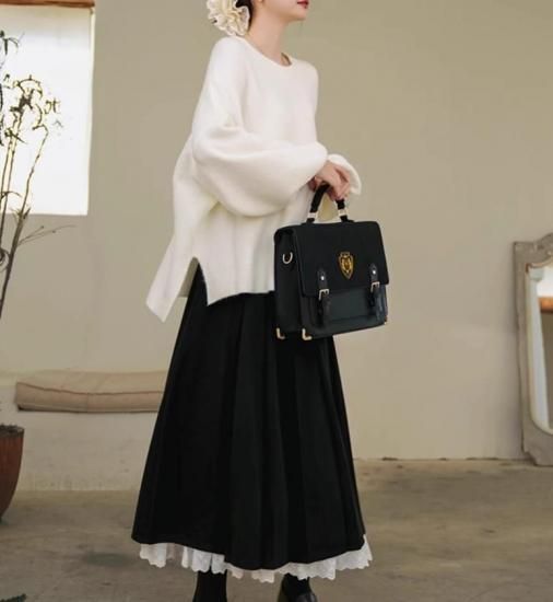 セミロリータ プリーツ ロングスカート のみ ハイウエスト クラシカル レトロ 古風 学院風 アンティーク フレンチクラシカル 大人可愛い 上品 秋冬コーデ デート デイリー